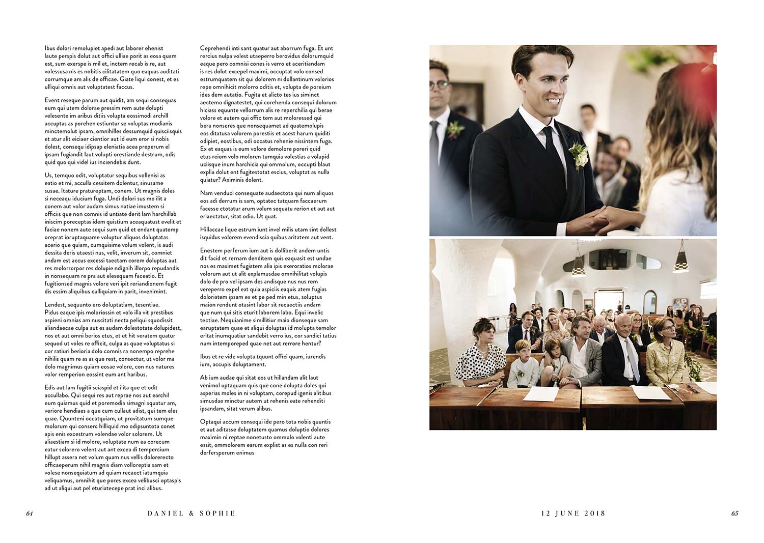 Drawing inspiration from fashion and art, the crisp modern upper and lowercase lettering in regular and italics that look equally stylish as your paragraph typeface but really shines when used as large bold type in headings and pretty quotes to nicely compliment your photographs, and help the reader navigate through the story of your wedding day.